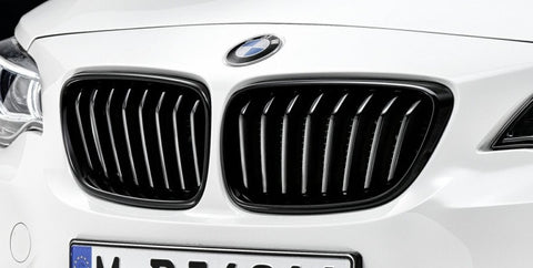 Genuine BMW F22 2 Series M Performance Gloss Black Grilles. Enhance the distinctive and dynamic character of the BMW 2 Series with these high-gloss black kidney grilles. Left and right sold. *Not for vehicles with night vision.